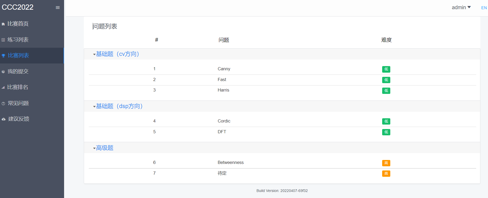 - 练习列表:报名选手通过练习里的问题来熟悉系统使用流程